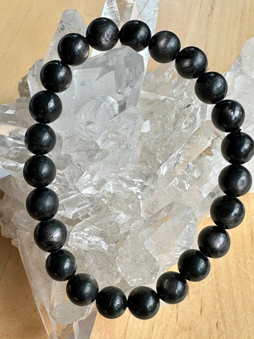 Silver Sheen Obsidian Bead Bracelet - 8mm Silver Sheen Obsidian has a higher vibration than normal Black Obsidian. It's cool, calm energy helps us ...