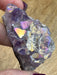 Natural Amethyst that has been heat infused with rare metal vapours (like gold, silver, platinum) in a vacuum chamber.The pure metals bond with the Amethyst, which results in colouring that cannot be scratched off. The crystal generates a rainbows of colour that shimmer and change as you move it in the light.
