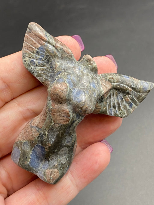 Gorgeous Angels with outstretched wings Click on drop down box to choose from sparkling Strawberry Quartz, Pink Opalite, Lepidolite and Que Sera. A...