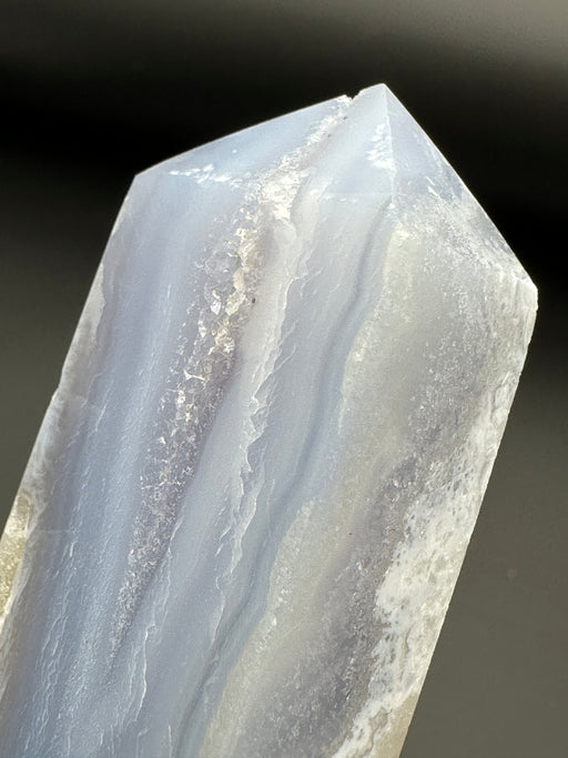 Blue Lace Agate Point with two raw druzy natural edges 143gm - 9cm x 3.25cm x 3.25cm - stone of communication - great for public speaking - encoura...